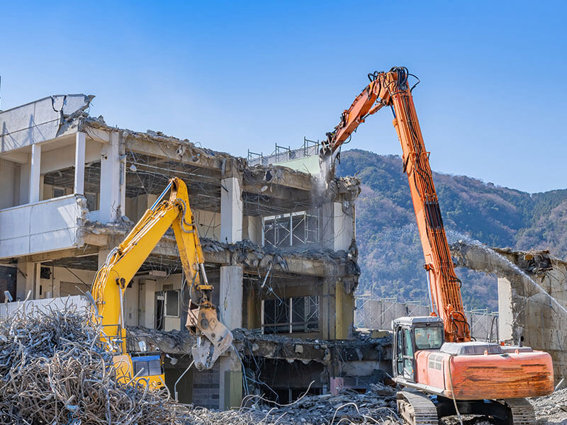 住宅やビル、工場、倉庫など、あらゆる建物の解体に対応し、周辺環境への配慮も徹底。産業廃棄物の適正処理や、リサイクルの推進にも努めています。